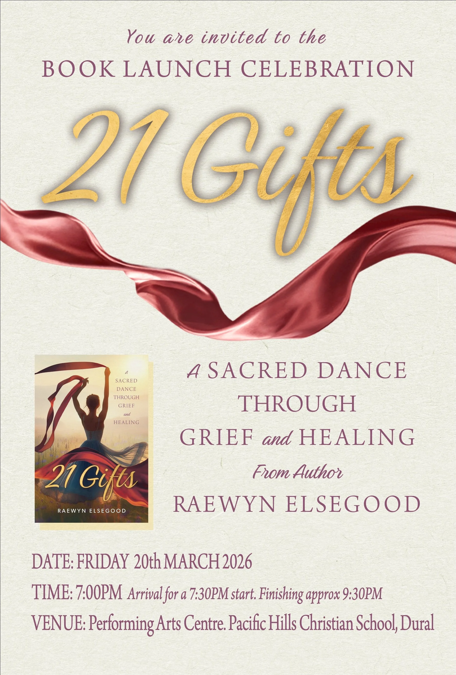 Join us either in person or online on 20th March, 2026 to celebrate the launch of 21 Gifts: A Sacred Dance Through Grief and Healing. A legacy to our daughter Amy. Whether you are walking your own path of sorrow, supporting someone through loss, or simply seeking to understand how we keep moving when life interrupts the music - you are welcome.